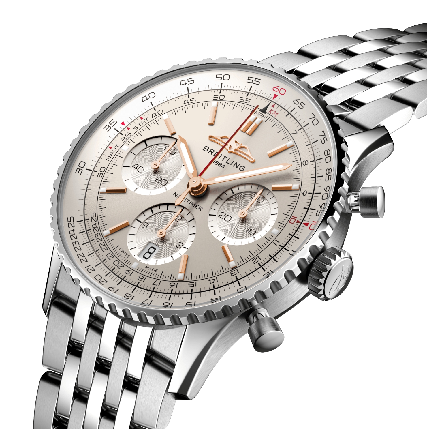 Breitling’s iconic pilot’s chronograph – for the journey. In 1952, Willy Breitling developed a wrist-worn chronograph with a circular slide rule that would allow pilots to perform all necessary flight calculations. Two years later, the Aircraft Owners and Pilots Association (AOPA) announced the design as its official timepiece. The “navigation timer” – or Navitimer – was born. The AOPA was (and remains) the largest pilots’ club in the world, counting nearly every US aviator among its ranks. As the defacto pilot’s watch throughout the glory days of civil aviation, the Navitimer was worn by airline captains and aircraft enthusiasts. It even made its way into space on the wrist of astronaut Scott Carpenter in 1962. And it wasn’t only pilots drawn to the watch’s irrepressible aesthetic. Celebrities of the day such as Miles Davis and Serge Gainsbourg were devotees, proving that the Navitimer had style as well as function. There have been many iterations of Breitling’s icon since its debut 70 years ago, but this new Navitimer captures its most classic features, while enhancing them with modern refinements. A flattened slide rule and a domed crystal create the illusion of a sleeker profile. Alternating polished and brushed metal elements give a lustrous, yet understated finish. Most notably, new colors in shades of blue, green and copper, define the updated dial options. And if there is one update sure to spark nostalgia, it’s the return of the AOPA wings to their original position at 12 o’clock. For 70 years, Breitling’s original pilot’s watch has been beloved by aviators and tastemakers in equal measure. Worn by astronauts in space and the biggest stars on earth, it is Breitling’s most iconic timepiece and one of the most recognizable watches of all time.