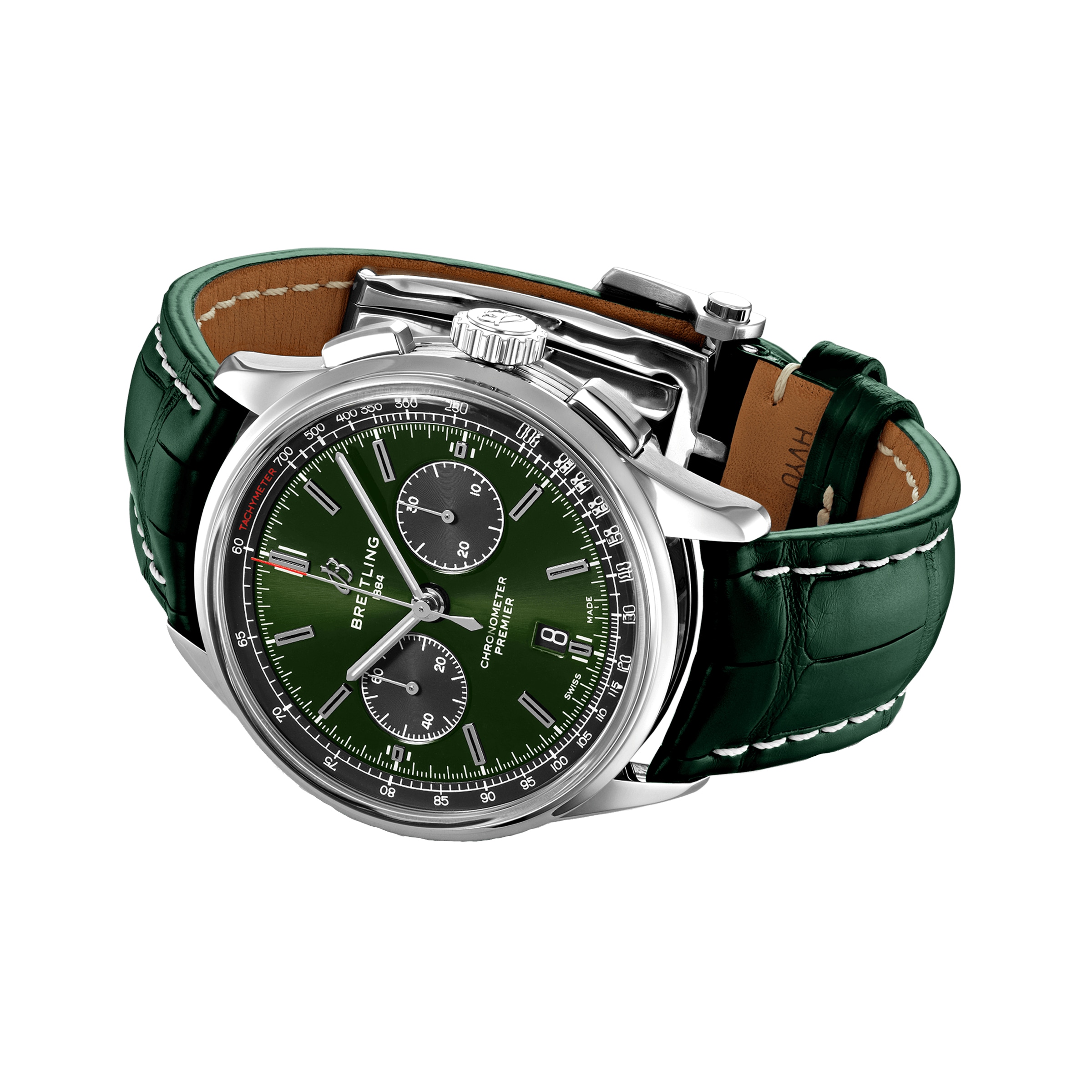 Designed by Willy Breitling in the 1940s, the Premier was the brand's first-ever watch dedicated purely to style. Featuring elegant details and modern-retro touches, this reinterpretation of the Premier upholds its ancestor's reputation as a watch of impeccable taste. On top of its rectangular chronograph pushers and bi-compax chronograph panda look, the Premier displays a variety of elegant design details such as grooves on the case-side and open sapphire caseback. The Premier B01 Chronograph 42 is available in an array of dial colors and with case materials that include stainless steel and 18k red gold. Offered either with a matching bracelet, or a choice of alligator or nubuck calfskin leather strap, this Premier is powered by the in-house Breitling Manufacture Caliber 01, a COSC-certified chronometer.