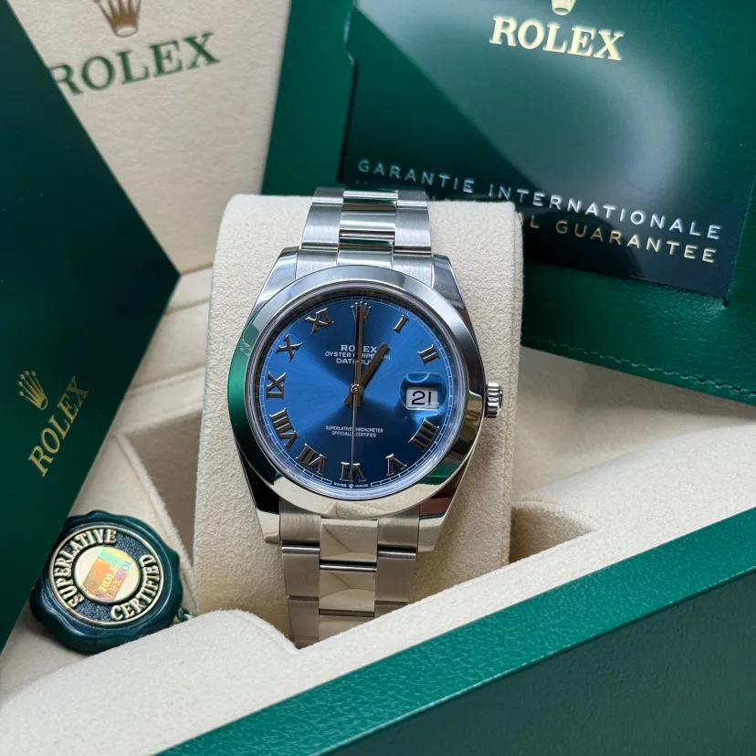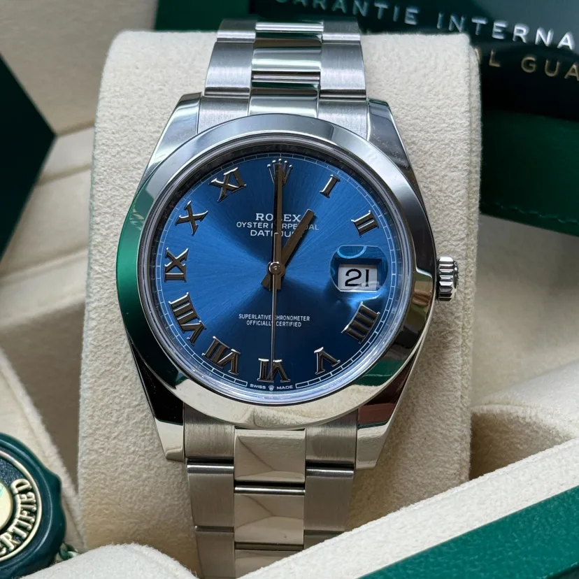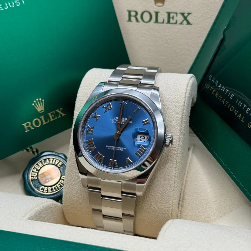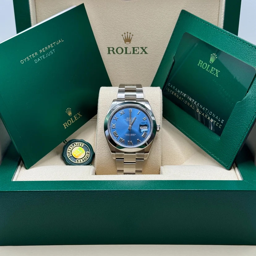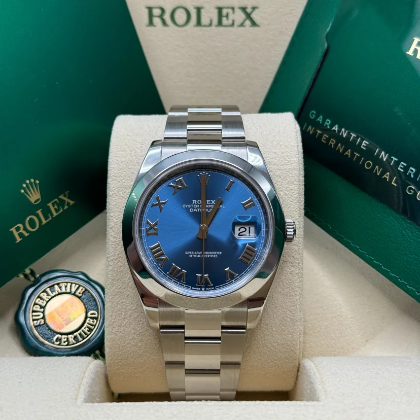 ROLEX Datejust 41mm 126300 Blue Roman Oyster Stainless Steel Watch