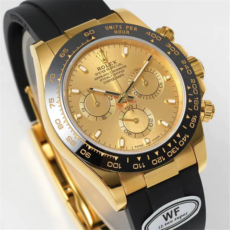 The Daytona’s chronograph feature functions are activated by pushers that screw down like the winding crown when they are not in use, guaranteeing waterproofness to 100 metres. One press to start, stop or reset the chronograph produces a crisp, clear click that was perfected using the most advanced technology. watchmakers also perfected the mechanism to suit the ideal finger pressure on the pushers, and engineered it to provide an instantaneous and accurate start to the timing without sacrificing reliability.