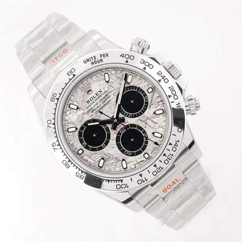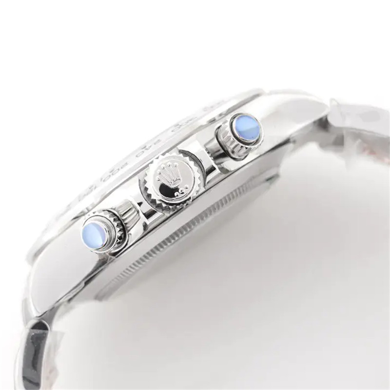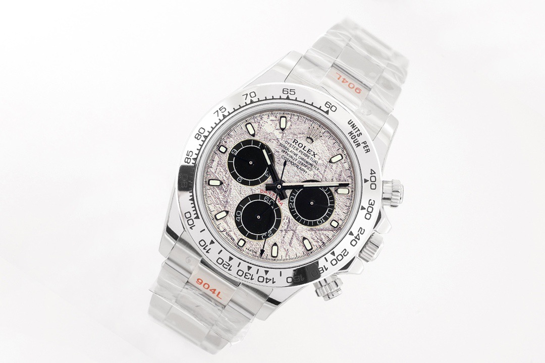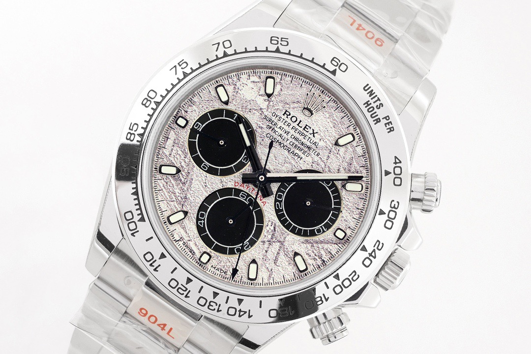 Daytona Swiss replica watches looks and function identical to a genuine Rolex. Our Swiss cloned Rolex chronograph movements feature every Rolex engraving, serial numbering and are lubed with Nano-oil Swiss lubricants and are designed to last a lifetime. Visually and functionally our chronograph movement 28.000 vibrations per hour offers the same fine sweep seconds hand “Rolex” motion as on the genuine Rolex. Our chronograph sub dials displays the seconds, minutes, hours and both screws down buttons are fully functional for the chronograph start-pause-stop functions.