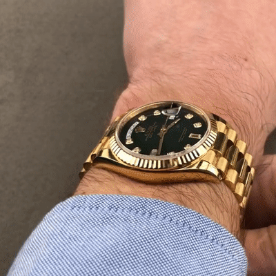The Rolex fluted bezel is a mark of distinction. Originally, the fluting of the Oyster bezel had a functional purpose: it served to screw the bezel onto the case helping to ensure the waterproofness of the watch. It was therefore identical to the fluting on the case back, which was also screwed onto the case for waterproofness, using specific Rolex tools. Over time, the fluting became an aesthetic element, a genuine Rolex signature feature. Today the fluted bezel is a mark of distinction, in gold on this Day-Date 36.