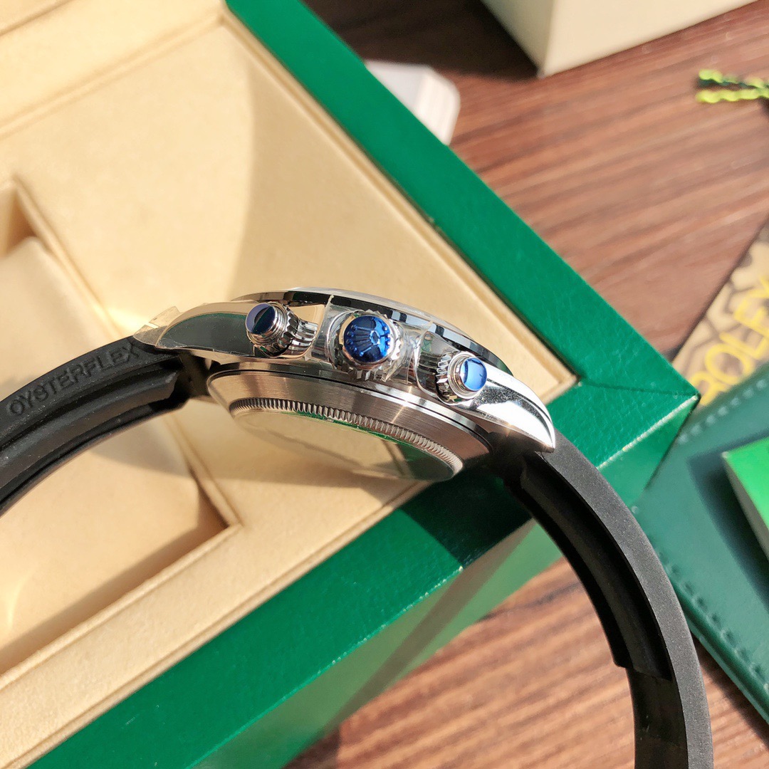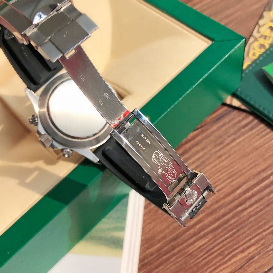 The Daytona’s chronograph feature functions are activated by pushers that screw down like the winding crown when they are not in use, guaranteeing waterproofness to 100 metres. One press to start, stop or reset the chronograph produces a crisp, clear click that was perfected using the most advanced technology. watchmakers also perfected the mechanism to suit the ideal finger pressure on the pushers, and engineered it to provide an instantaneous and accurate start to the timing without sacrificing reliability.